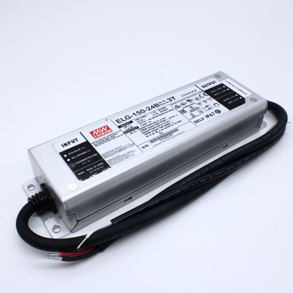 ELG-150-24B-3Y, AC-DC, 150Вт, IP67, вход 100…305В AC, 47…63Гц/142…431В DC, ККМ, выход 12...24В/6,25А, изоляция 3750В AC, в кожухе 219х63х35,5мм, -40…+70°С, димминг 3 в 1, провод заземления